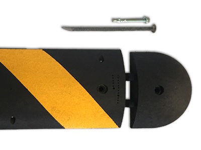 Fabricamos la Tachuela en cuerpo de Aluminio con perno de varilla 3/8” con punta para poder ser aplicada sin necesidad de barrenar (en la mayoría de los casos si es carpeta asfáltica) y sin necesidad de pegamento adicional. Mide 9.5 cm de diámetro y funciona a manera de vibrador en avenidas de alta velocidad para ayudar a reducir la velocidad de los vehículos.Topes